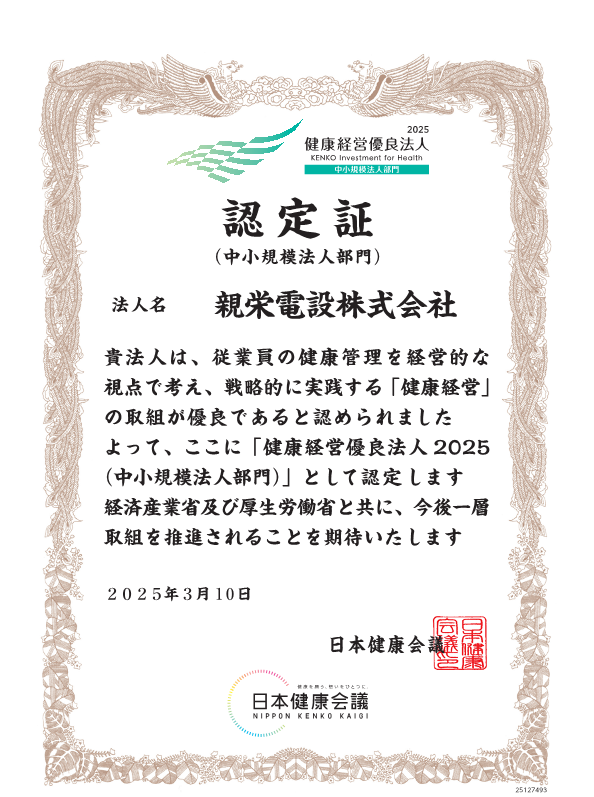 「健康経営優良法人2025」(中小企業法人部門)に当社が認定されました